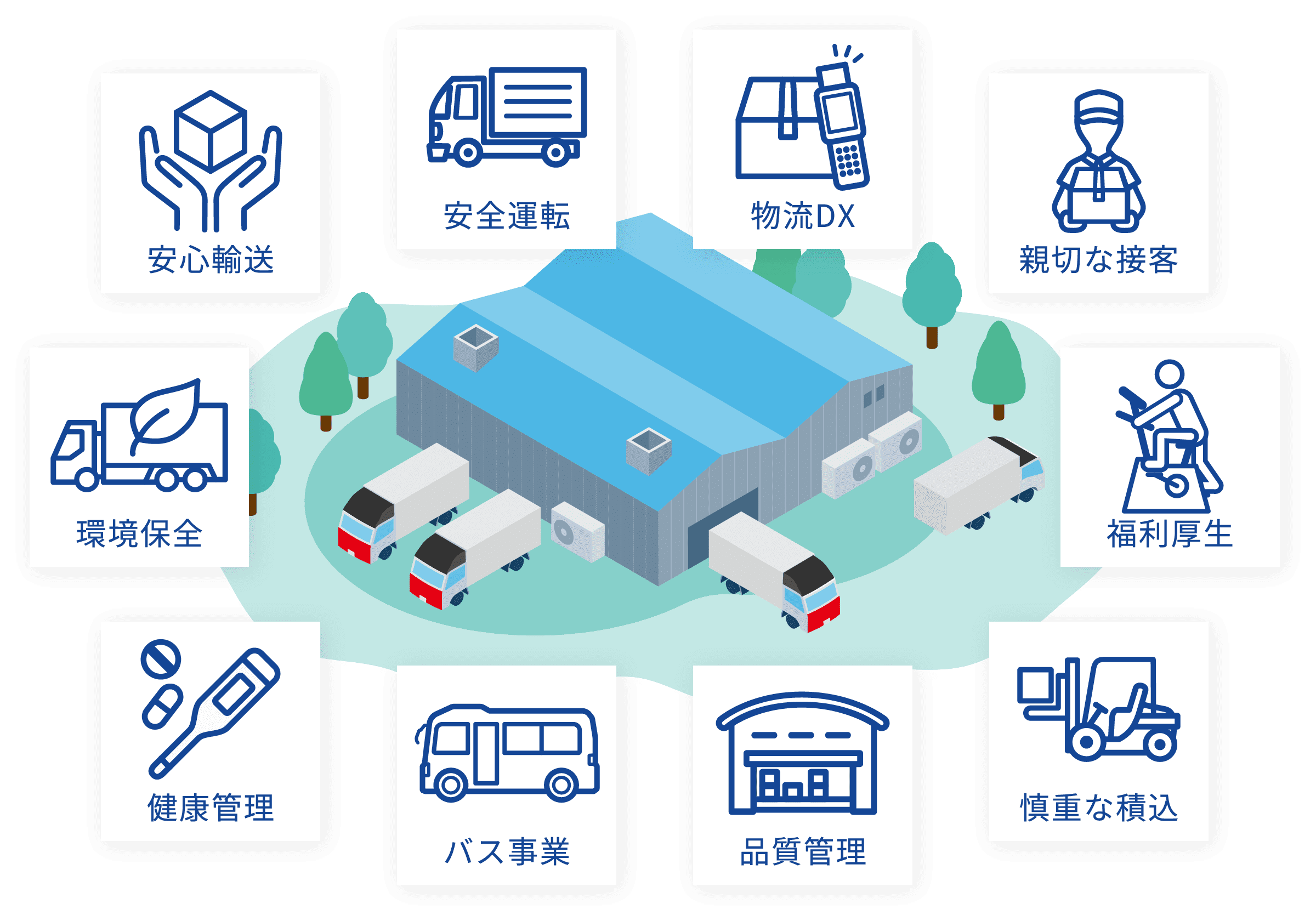 物の運送だけでなく、バス事業を通じて地域の皆さまの移動を安全・快適にサポートし、安心と信頼をお届けすることを使命としています。